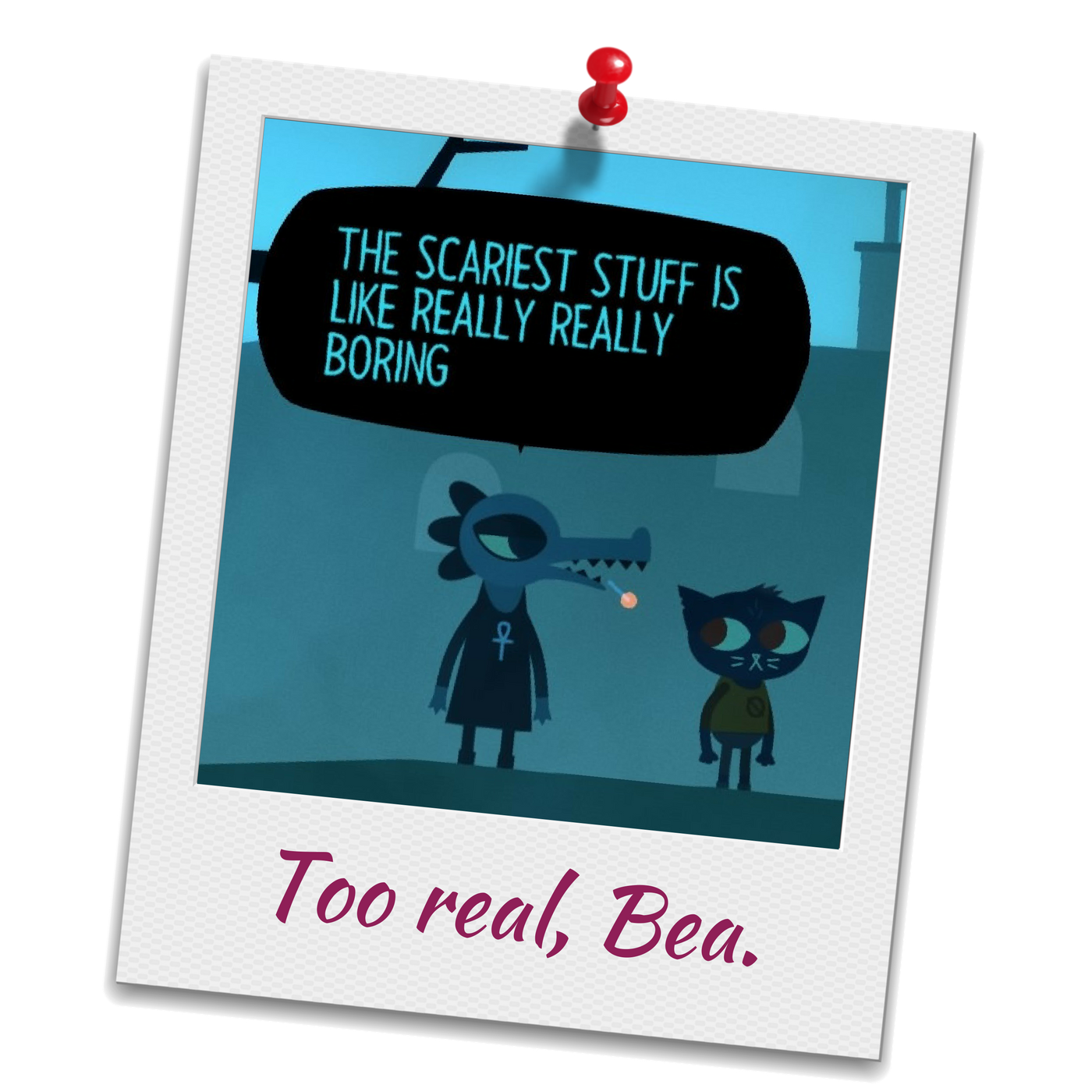 This game is about more than superficial post-teen social dynamics. It also addresses some serious mental health concerns, but it doesn't make them scary, foreign monsters to be fought. These are real (animal) people that live with anxiety, depression, bipolar disorder, etc. The developers clearly put a lot of attention into the real depth of these characters and approaching mental health as a part of life, instead of demonizing it. Go play Night in the Woods.